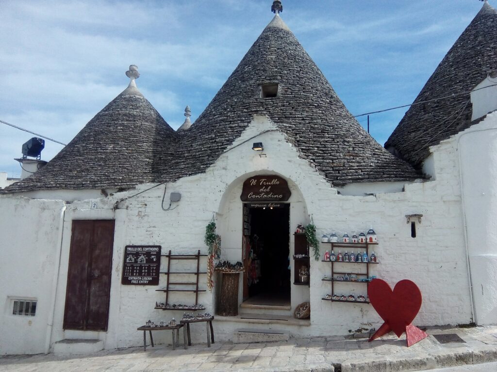 Równie atrakcyjne okazało się miasteczko Alberobello z charakterystycznymi domkami Trullo. Domki wyglądają jak z bajki i ma się wrażenie, że za chwilę wyjdzie z nich jakiś skrzat lub skrzatowa:) Tymczasem są to zwykłe domostwa, budowane charakterystyczną techniką z wykorzystaniem płaskich kamieni bez żadnego spoiwa. Niektóre z nich przekształcone są w galerie rękodzieła, kafejki i sklepiki. Alberobello znajduje się w Apulii, regionie sąsiadującym z Basilicatą i ktokolwiek zabłądzi w te strony, nie może – moim zdaniem- podarować sobie Alberobello.