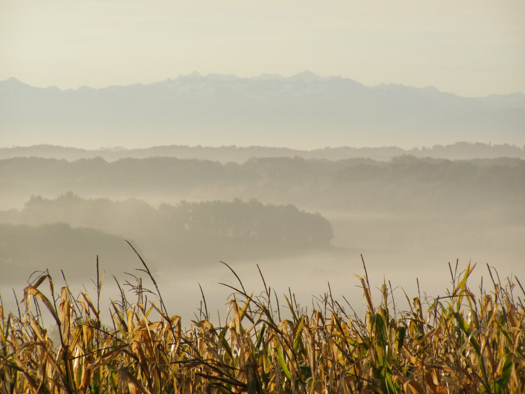 Tym razem jestem na południu Francji niedaleko granicy z Hiszpanią, blisko Kraju Basków. Z ogrodu roztacza się widok na łąki i pola, a w oddali (czasem) majaczą Pireneje. Niestety, tylko czasem, bo kiedy są wyższe temperatury, nie widać nic. Dopiero przy bardziej rozrzedzonym powietrzu można dostrzec kontury gór w oddali. Przez 2 pierwsze dni zatem nie było widać za wiele, bo było parno i gorąco (ok. 30*C)