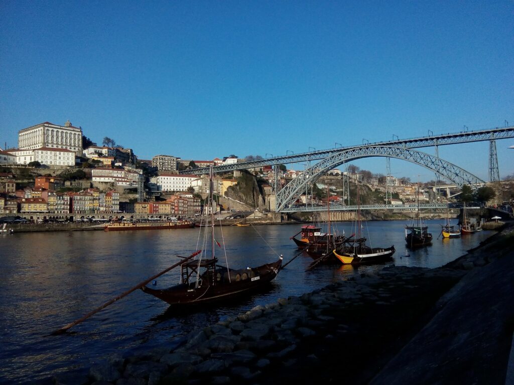 Pogoda w Porto była wspaniała, a spacer skończył się nad brzegiem rzeki Duoro w dzielnicy Ribeira, tuż przy słynnym Ponte Luís I – dwukondygnacyjnym stalowym moście, znaku rozpoznawczym miasta.