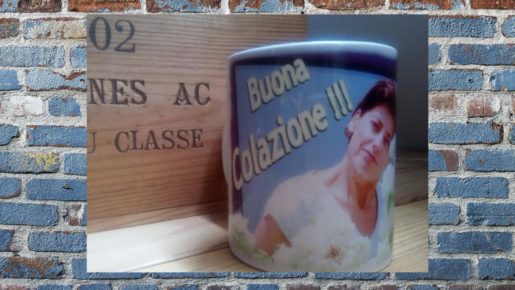 No więc w ramach odgruzowania mieszkania oraz pozbycia się wielu niepotrzebnych rzeczy, które czasem jawią się jak obiekty niezidentyfikowane, ponieważ kompletnie nie wiem, do czego miałyby służyć – urządzam pchli targ. Jest to już trzecia edycja takiego wydarzenia i zawsze efekt był zadowalający. Korzyść jest oczywista, ale dodatkowo podczas przygotowywania 'towaru’ i buszowania w skrytkach, pudełkach i zakamarkach można natknąć się na coś, co dawno zniknęło z pola widzenia i uznane było za zaginione. Tym razem znalazłam to, czego od dawna szukałam na potrzeby tego bloga! Mianowicie odnalazł się mój list z podziękowaniem od Marii, u której przebywałam w ramach Workaway w maju 2015 roku. Treść tych podziękowań była ogromnie wzruszająca, a oprócz tej czarującej laurki dostałam kubek ze swoim zdjęciem na pamiątkę pobytu w Cascina Marie B&B 🙂.