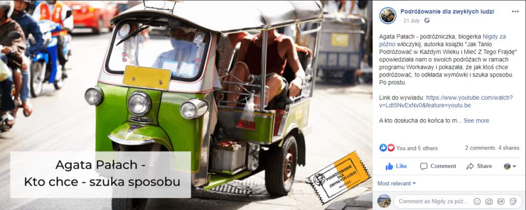 Aga i Piotrek to administratorzy strony Podróżowanie dla zwykłych ludzi. Kilka miesięcy temu wpadli na pomysł, aby przeprowadzać rozmowy ze zwykłymi ludźmi, którzy podróżują tzw. własnym sumptem i chcieliby się podzielić swoimi przygodami z innymi. W którymś tygodniu padło też i na mnie:) Mówczynią dobrą nie jestem, wywiadów nigdy na wizji nie udzielałam i zdecydowanie wolę pisać. Zresztą, nie bez powodu powstał ten blog.