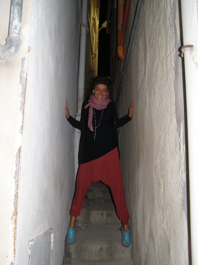 Ostatnio Facebook przywołał kolejne wspomnienie sprzed lat – moje zdjęcie zrobione w najwęższej uliczce w Europie, która znajduje się właśnie w Sciacca. Nosiłam wtedy moje ulubione luźne gatki typu Alladynki i na tym zdjęciu właśnie mam je na sobie. Zdjęcie jak zdjęcie – całkiem je lubię. Siebie na nim też. Ale liczba komentarzy pod tym zdjęciem, a konkretnie komentarze dotyczące samych gatek, przeszła moje najśmielsze oczekiwania. Czytając je teraz, po kilku latach, nieźle się uśmiałam 🙂 Zatem dzielę się tą fotografią  i pokazuję siebie w gatkach z „miejscem na pieluchę” – jak to określił jeden z komentujących 😉 ;);)